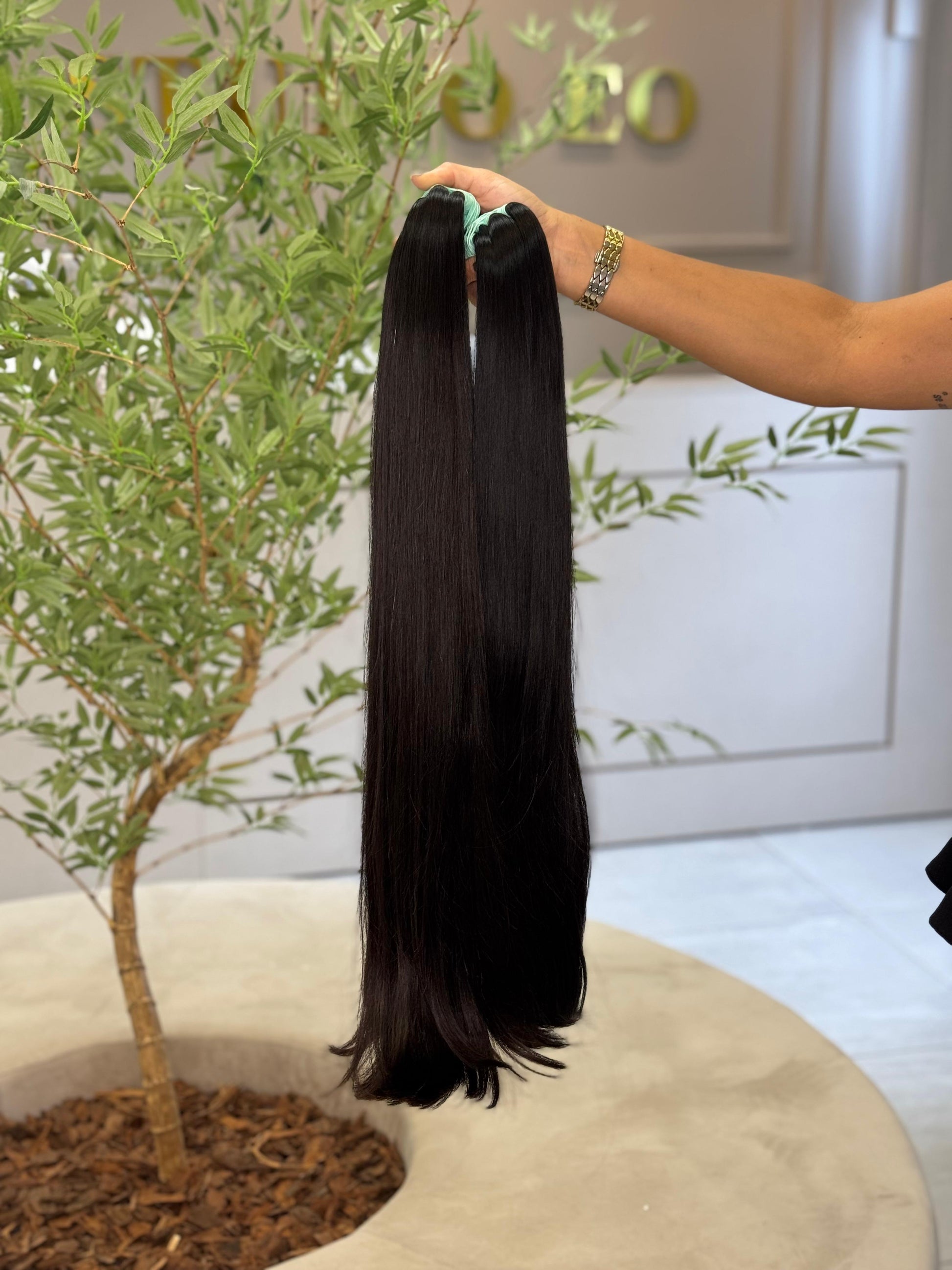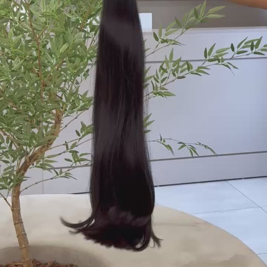 Cabelo virgem e natural, com um tom de castanho médio, perfeito para um look versátil e discreto, cheio de naturalidade.